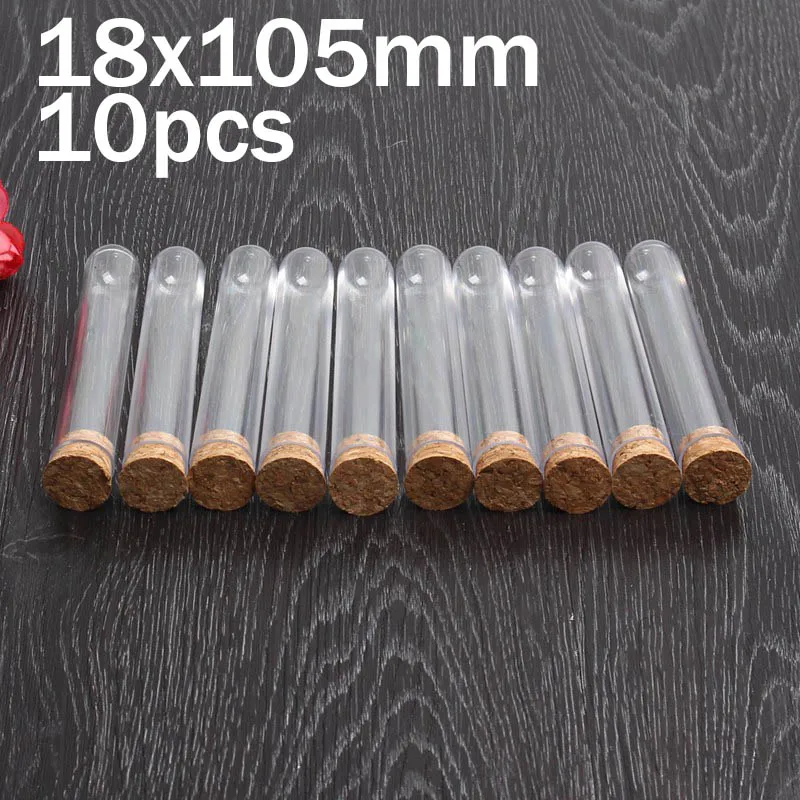 10 шт.лот прозрачная пластиковая круглая тестовая трубка с пробками, пустые ароматизированные пробки для чая, как стекло 18x105mm