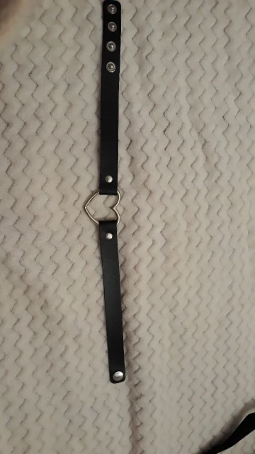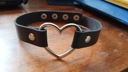 Ошейник очень мягкий. Ремешки выглядят как искусственная кожа. С обратной стороны приятная на ощупь материя. Сердце металлическое, выглядит надёжно. Заклепки держат отлично и главный плюс что их 4 (т.е. можно отрегулировать под свой размер). Товаром довольна)