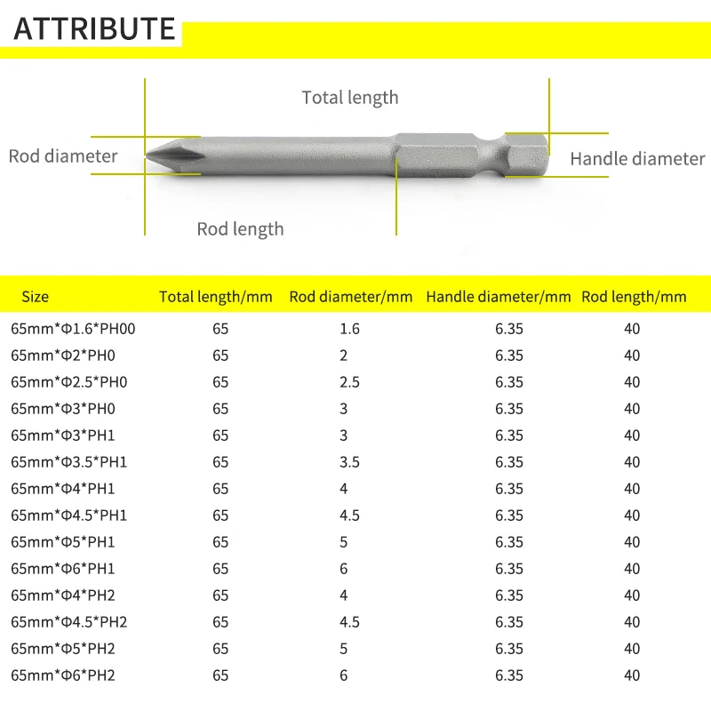 65 мм в длину, фрикционная головка, S2, стальные наборы бит для отверток 1,622.533.544.556 мм