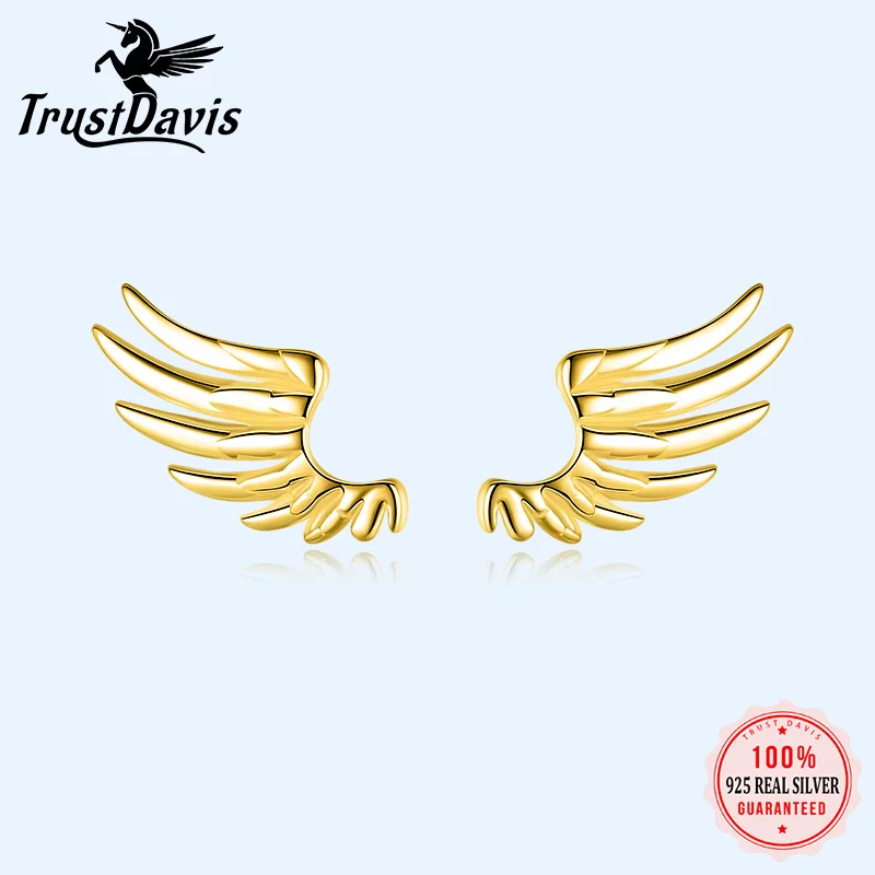 TrustDavis, женские серьги-гвоздики из стерлингового серебра 100% пробы с искусственными крыльями ангела, подарок на день рождения для девочек, детей, леди DS1519
