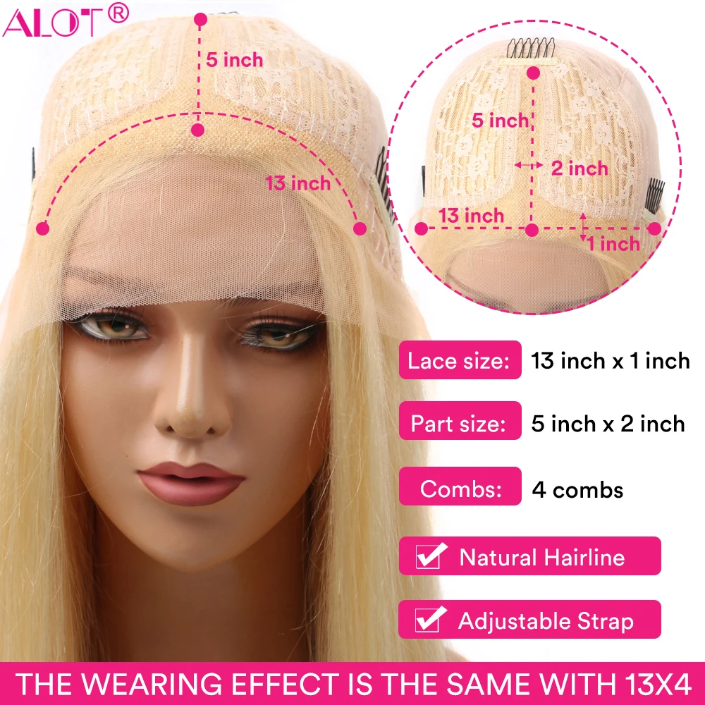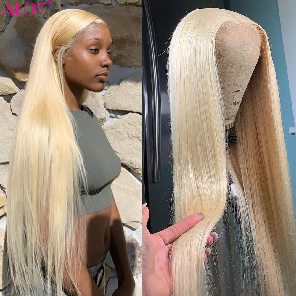 Парик блонд на сетке 613, бразильский прямой парик из натуральных волос 13x1, предварительно выщипанные, без клея, 613 парик 150%