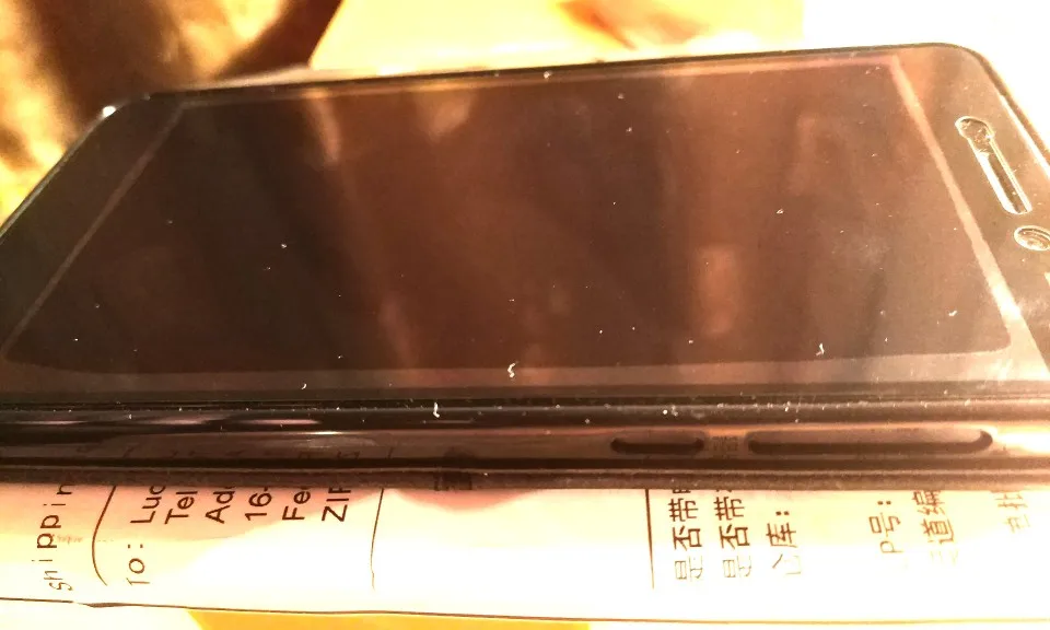 По краям экрана не прилегает плотно из-за этого видны полосы. Снизу черная полоса закрывает экран на 1-2 мм.