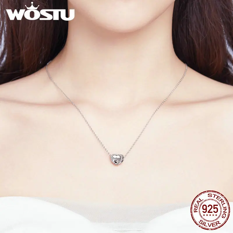 WOSTU 925 стерлингового серебра сестра любовь сердце бусы прозрачный CZ Fit оригинальный браслет Шарм DIY браслет аксессуары ювелирные изделия CQC1141