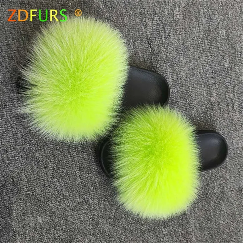 Шлепанцы ZDFURS из натурального Лисьего меха, сланцы, летние сандалии, повседневные модные плюшевые тапки, Лисий мех, 2019