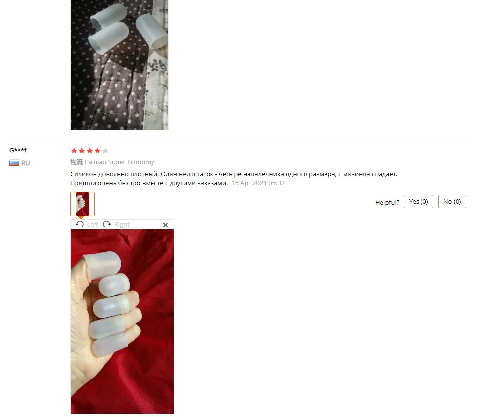 Доставка в Москву 69 дней. упаковка тонкий пакетик. Дошло в целости. Вид как на фото на сайте. Для женских пальчиков, напальничники очень велики. В работе не удобно. Брала для защиты от ожогов, но не уверена, что получится использовать в полной мере - когда на пальцах не держится, сложно делать тонкую работу (