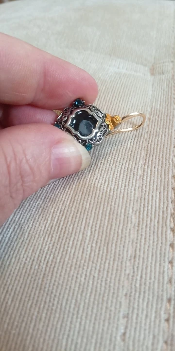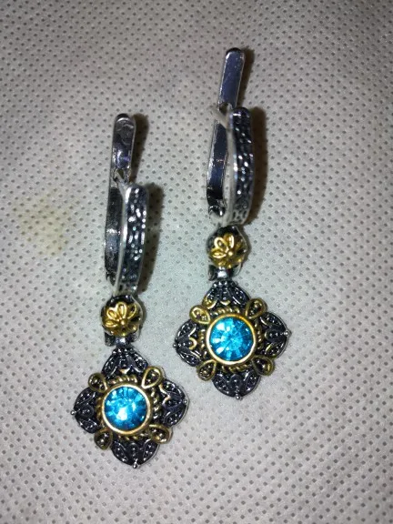 сережки красивые, размер устраивает. Из минусов: термоклей на задней поверхности сережек и уже через 3 недели постоянной носки начала стираться краска на задней поверхности кристалла в центре сережек.Позолота нечеткая Но учитывая стоимость....приемлемо