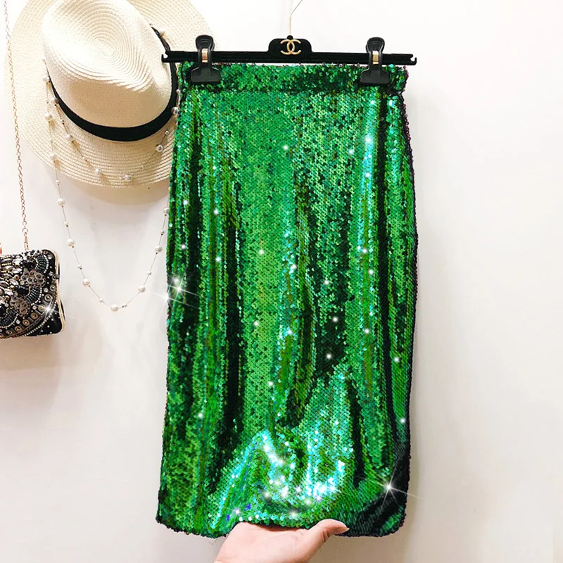 Cakucool Новый Юп блестками юбка штаны прямого покроя с миди украсить Бисер юбки мерцание прямой облегающий силуэт сексуальная юбка-карандаш Стретч