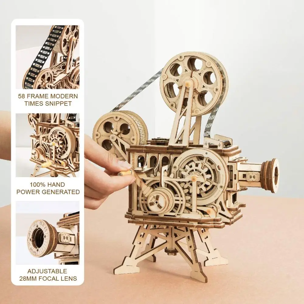 Проектор Robotime ROKR с рукояткой, классический фильм, витаскоп, 3D деревянная модель, строительные игрушки для детей и взрослых LK601