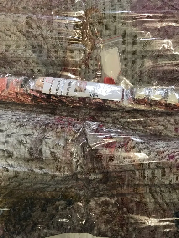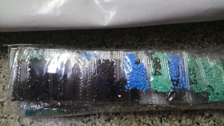 Товар приехал в Москву довольно быстро, через две недели после заказа. Доставили до квартиры. Упакованы картины хорошо, в воздушный пакет, намотаны на пакетики с мозаикой, помялись совсем чуть-чуть, незначительно. Два инструмента для выкладки. хороший поддон для стразов с удобным зауженным горлом. О количестве стразиков можно будет судить после завершения работы. Все хорошо, заказом довольна.