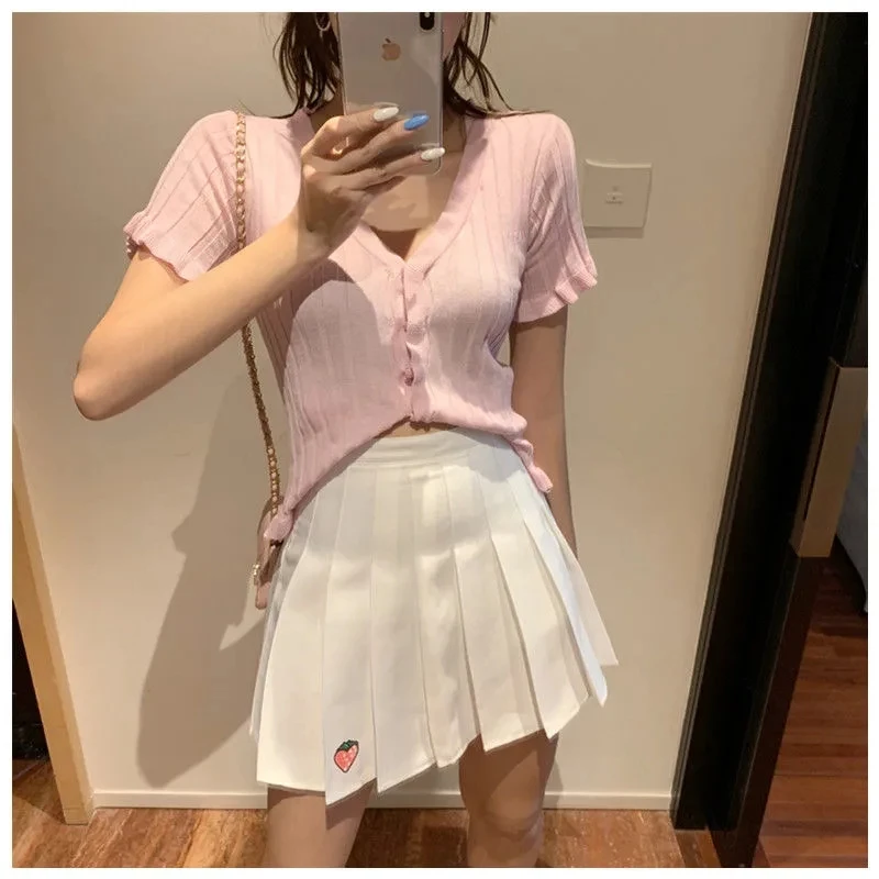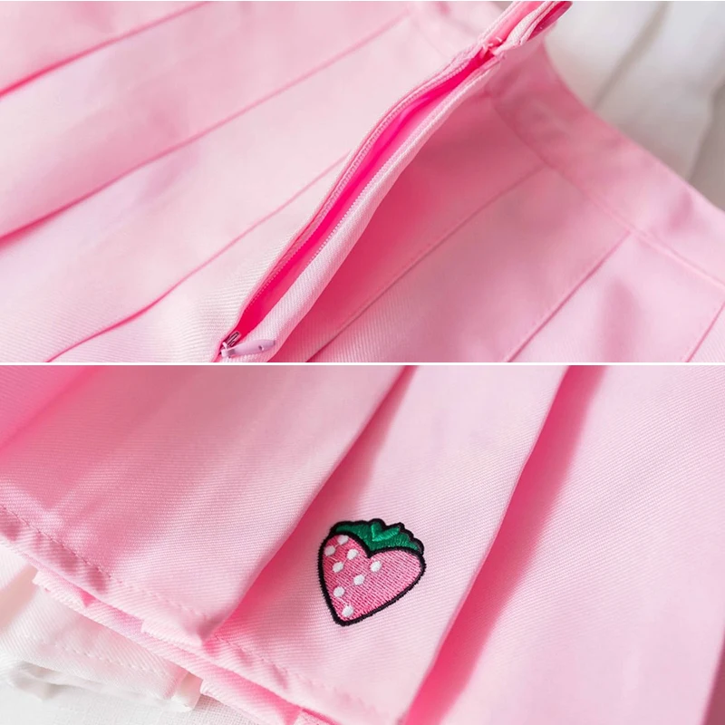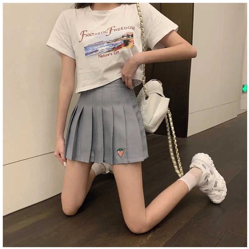 Корейская мода, летние женские юбки, милая Клубничная Маргаритка, короткая плиссированная юбка с высокой талией, Kawaii JK, студенческие мини юбки для девочек