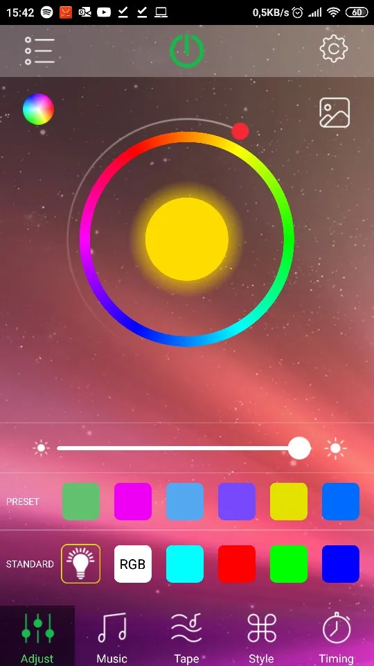Для 15 Вт я думал, что он загорится больше, но он очень хорошо работает с мобильным приложением Bluetooth. Это независимый переключатель приложения работает с двумя, независимо от того, что вы даете, он включается приложением, даже если вы выключили в последний раз переключателем. Память о последних светлых цветах, которые вы когда-либо использовали.