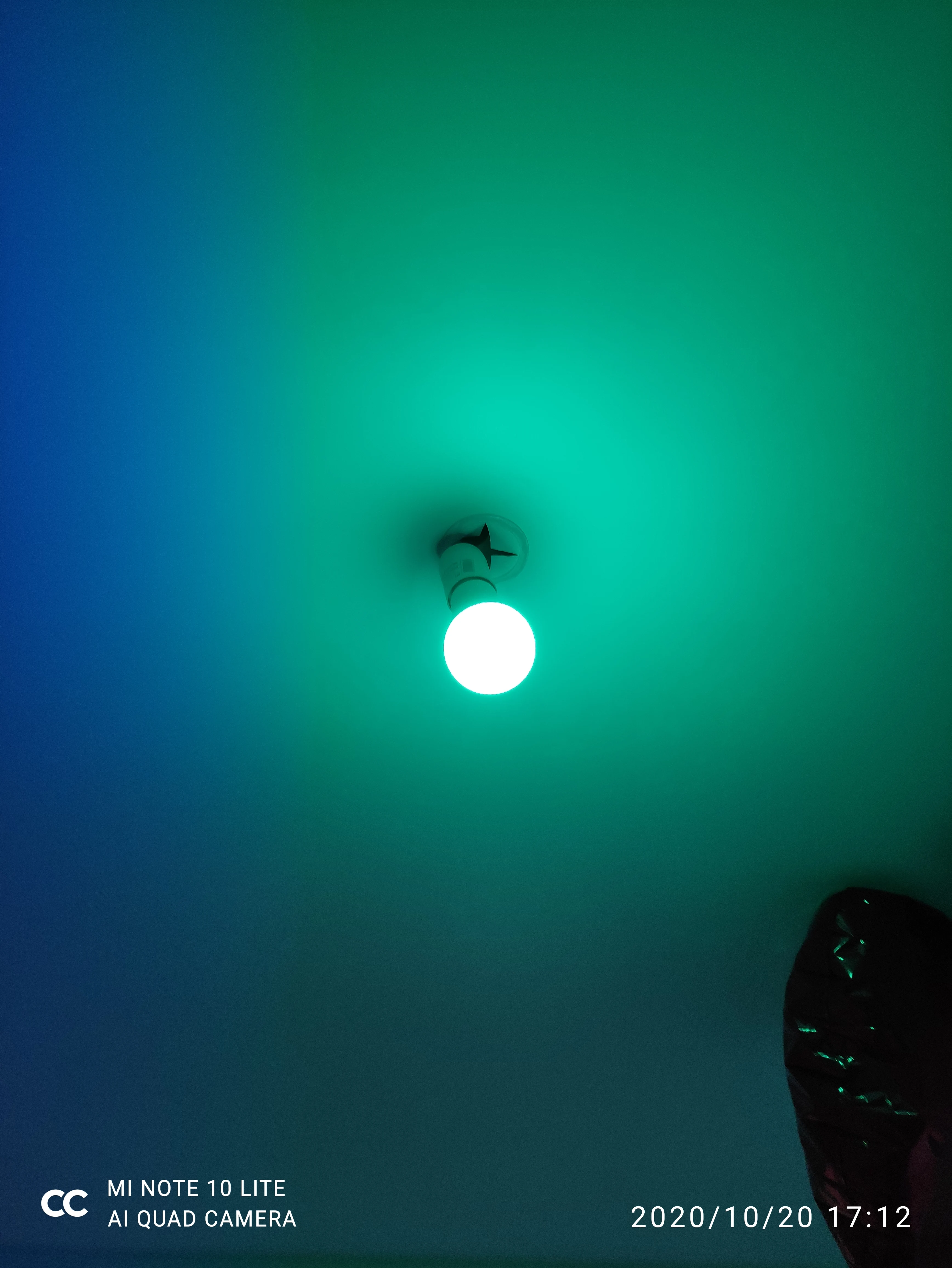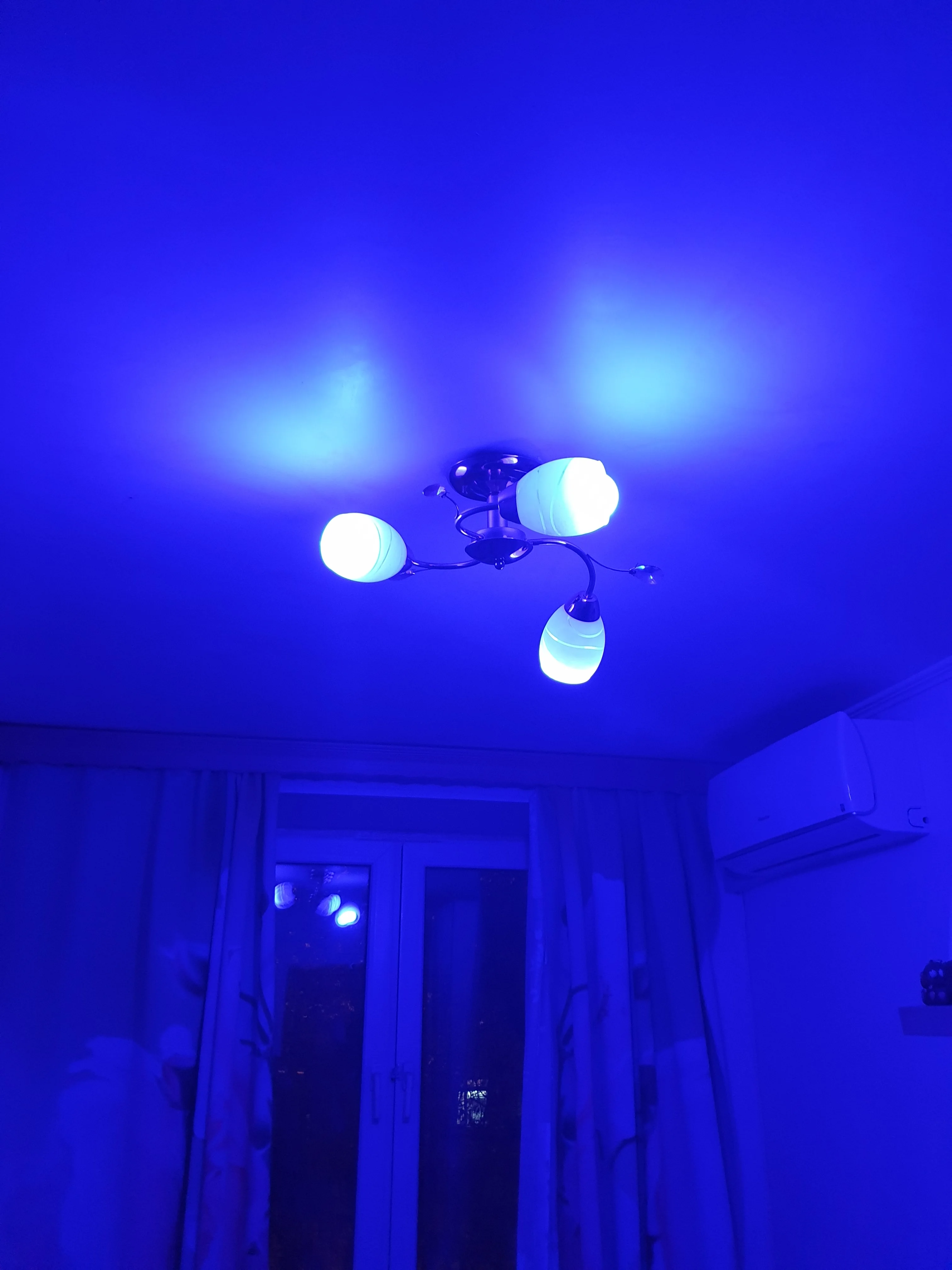 Лампочка работает, но глючит. Когда включаешь любой режим смены цветов, первый цвет моргает 3 раза. Не критично, я просто включал вместе с светодиодной лентой и получается отставание лампочки. Мощность 15Вт но светит меньше чем 11Вт с магазина. Белый цвет немного голубоватый.