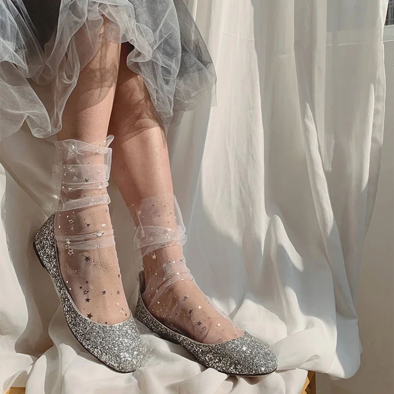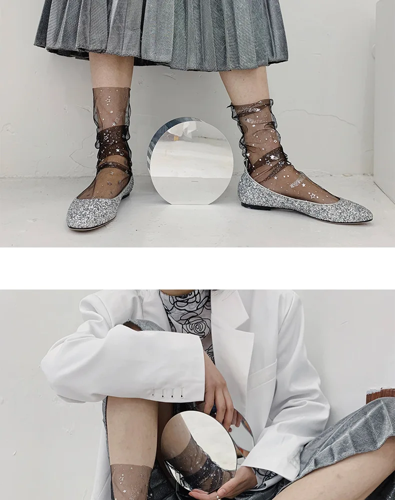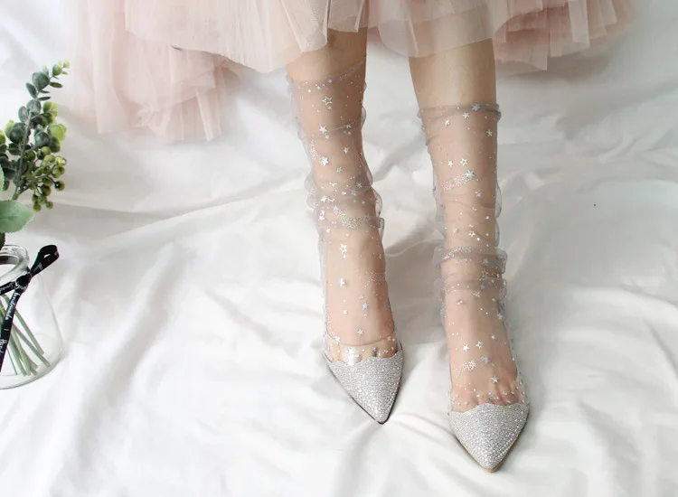 Носки женские блестящие в виде звезд, тонкие прозрачные длинные из ...