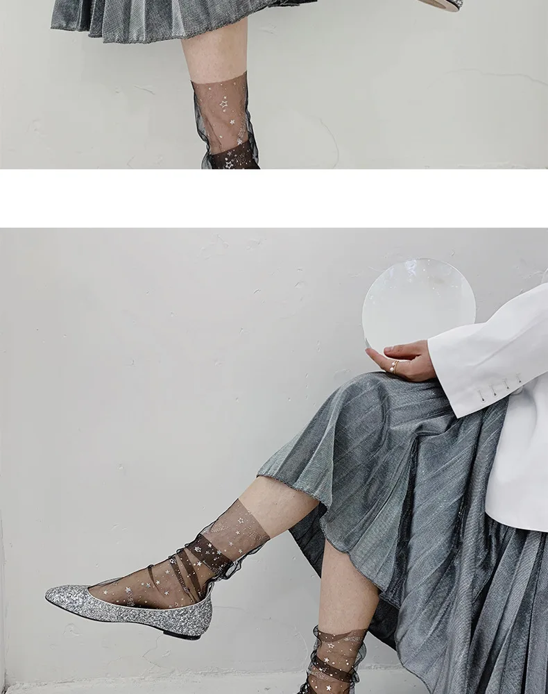 Летние тюлевые носки женские прозрачные тонкие сетчатые носки Звезда Луна длинные Chffion носки женские носки