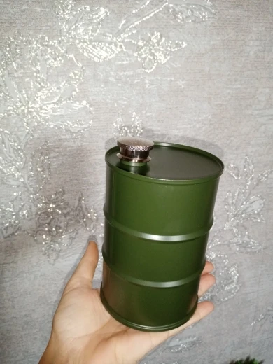 Фляга отличная! Заказ был сразу отправлен, отслеживался,пришел через 2,5 недели. Упаковка супер! Всё целое. Фляга металлическая, пробка тоже. Карабин на ремешке из пластика. Объем 730 мл. Брала на подарок отцу, он доволен! Рекомендую к покупке! ⭐⭐⭐⭐⭐