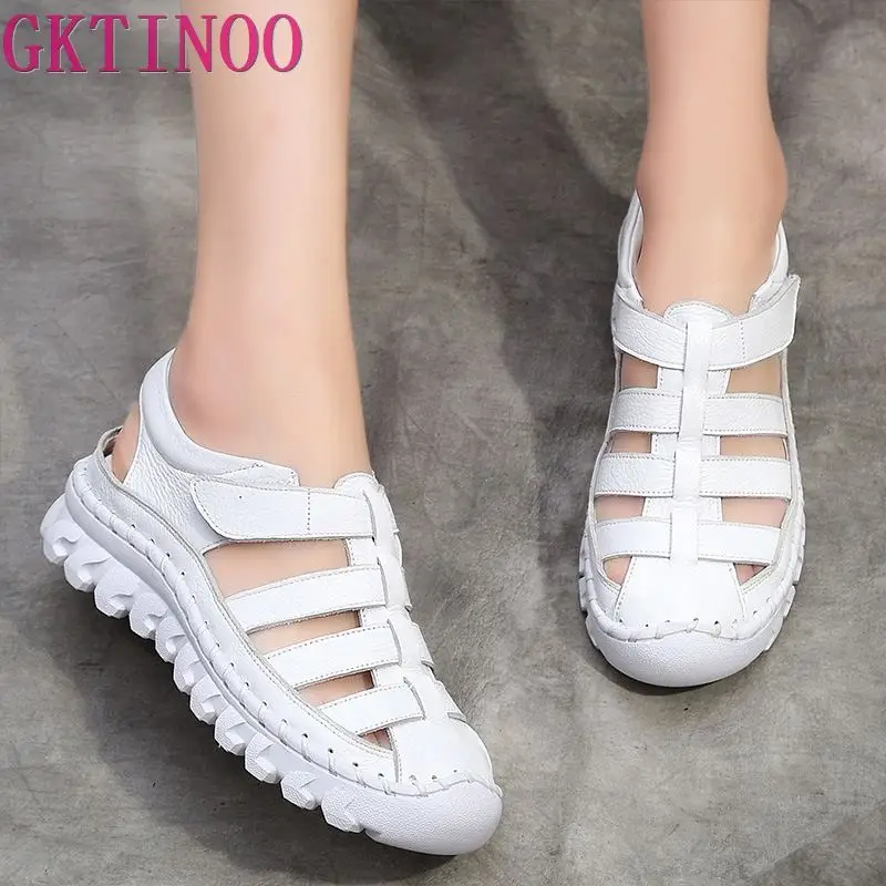 GKTINOOженские босоножки; Коллекция 2022 года; Летняя обувь из натуральной кожи с закрытым носком; Мягкая Повседневная прогулочная обувь; Zapatos Mujer Plataforma; Большие размеры 35-43