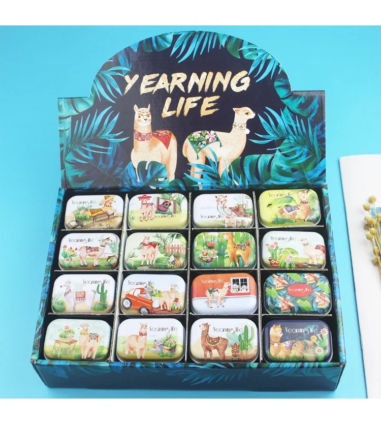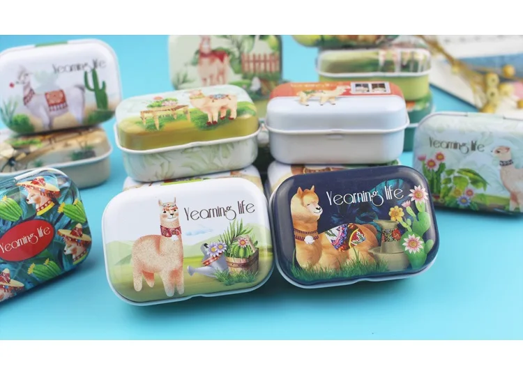 1 шт., Новая цветная мини-коробка с принтом альпака, парусник, жестяная коробка, герметичная банка, упаковочные коробки коробка для конфет, ювелирных изделий маленькие коробочки для хранения