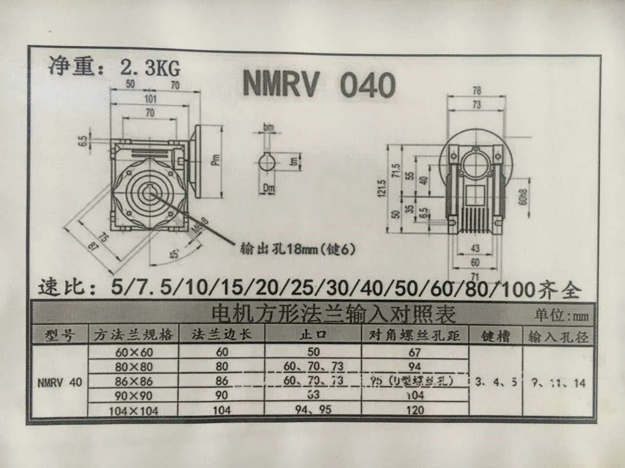 Размер редуктора RV40