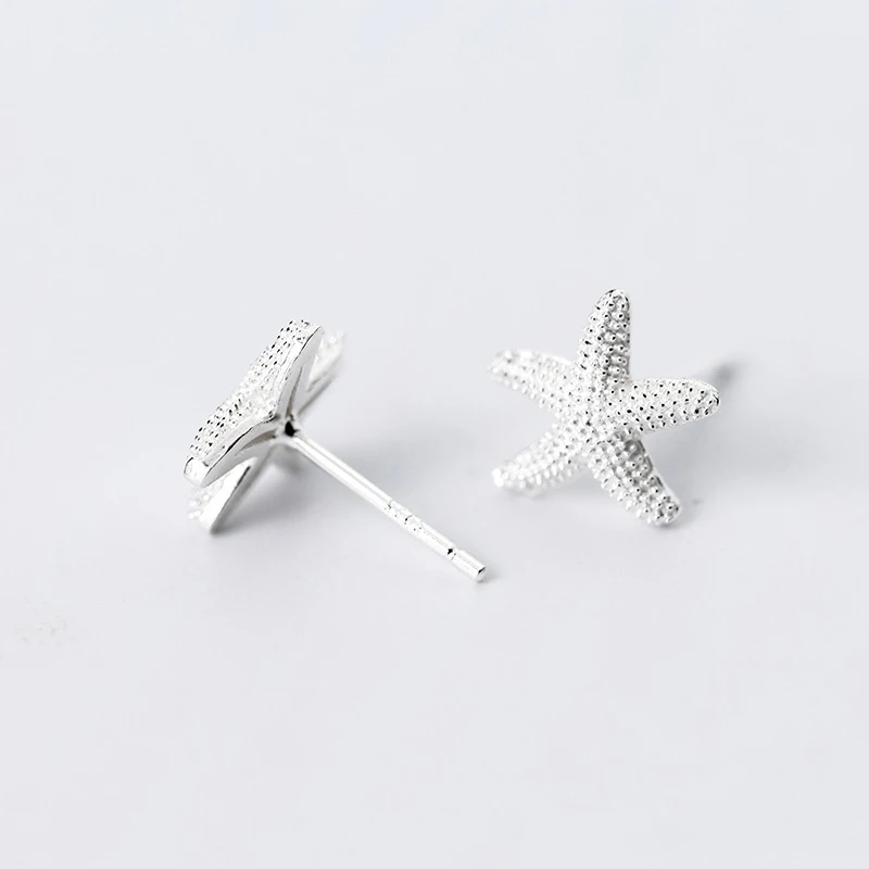 Женские серьги-гвоздики из серебра 100% пробы с морской звездой