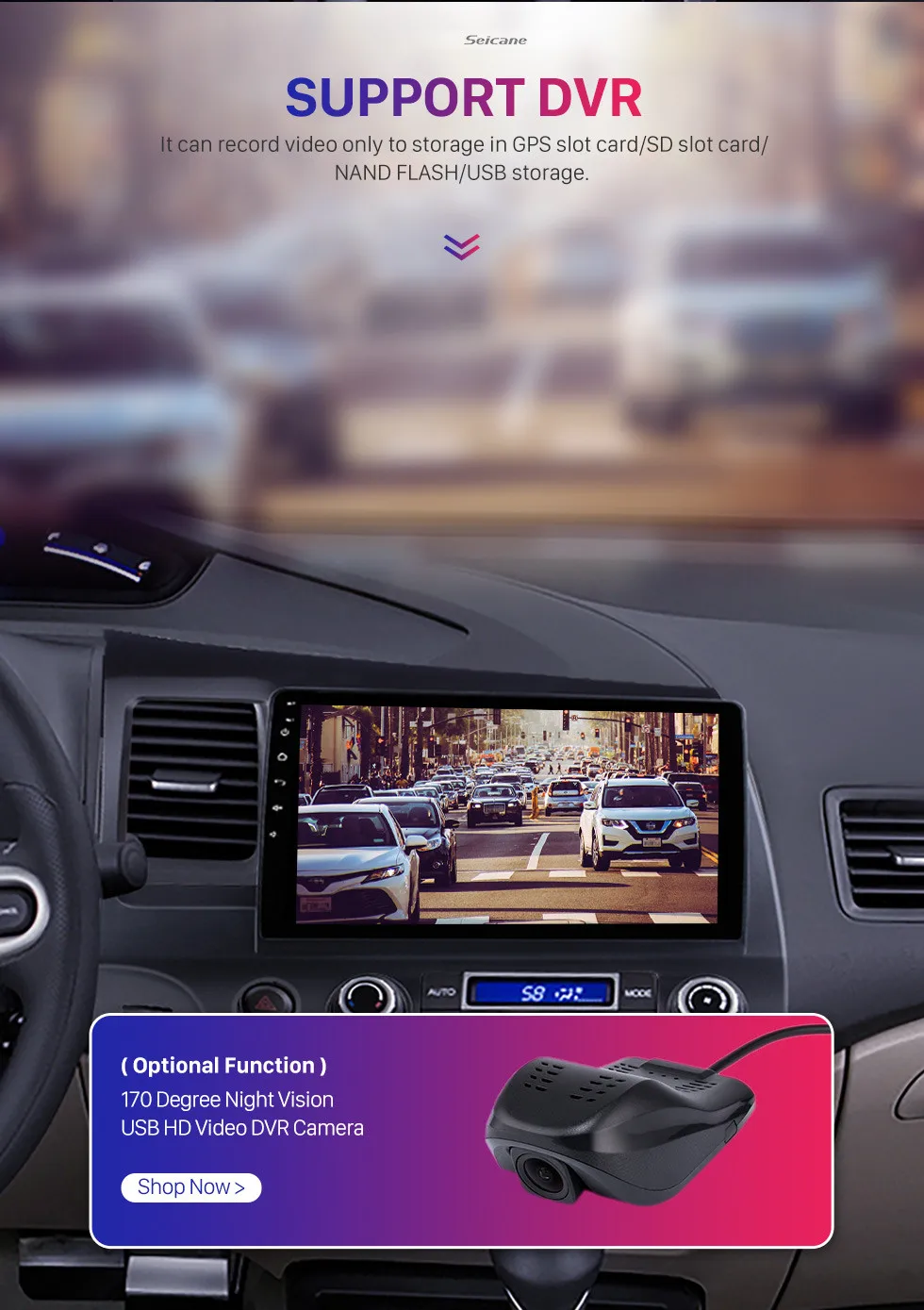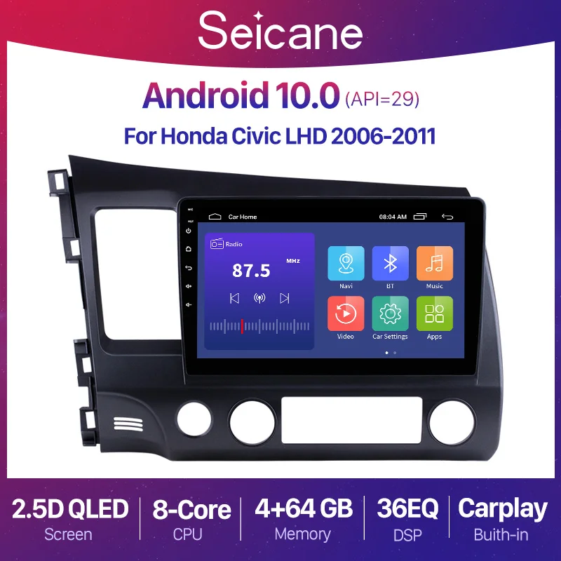 Автомобильный радиоприемник Seicane, 10,1 дюймов, Android 10,0, 2 + 32G QLED, автомобильный стерео GPS-навигатор для 2006-2011 Honda Civic 2din, поддержка задней камеры