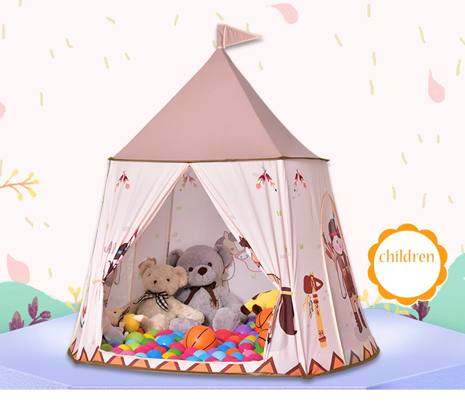 Палатка детская портативная Wigwam, домик для игр, вигвам, Замок принцессы, вигвам, подвесной флаг, складная игрушка для детской комнаты