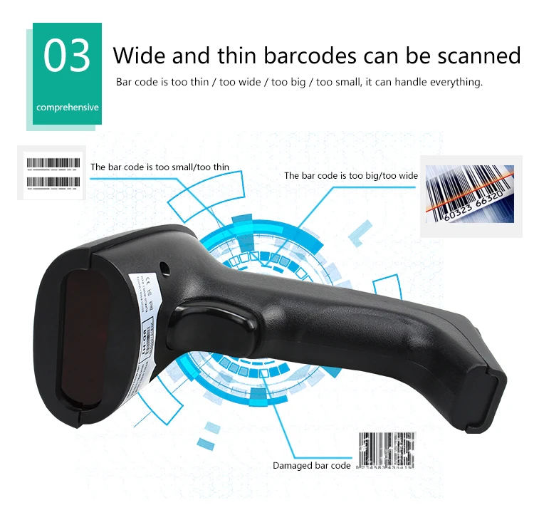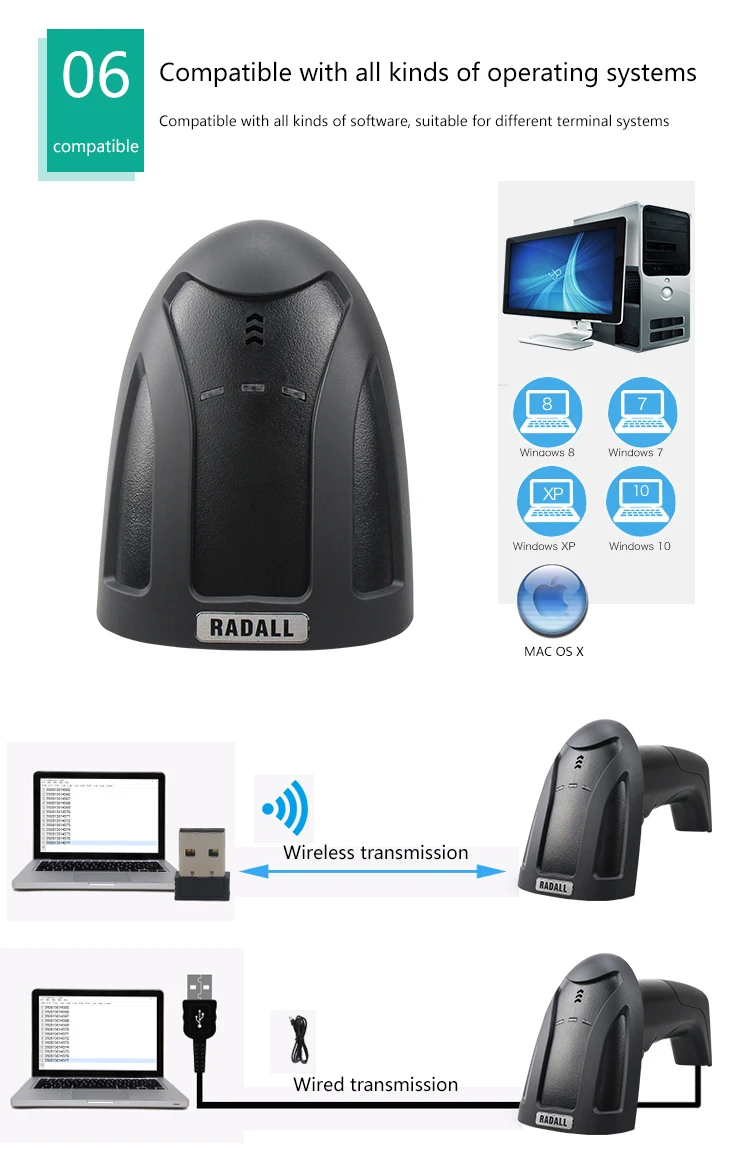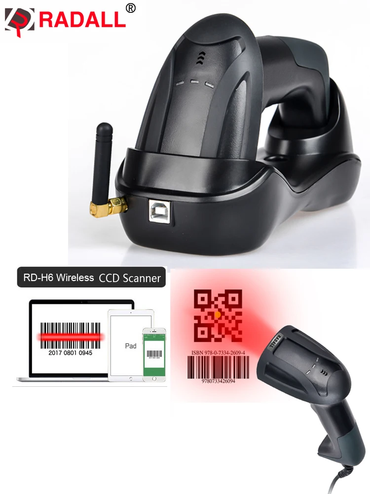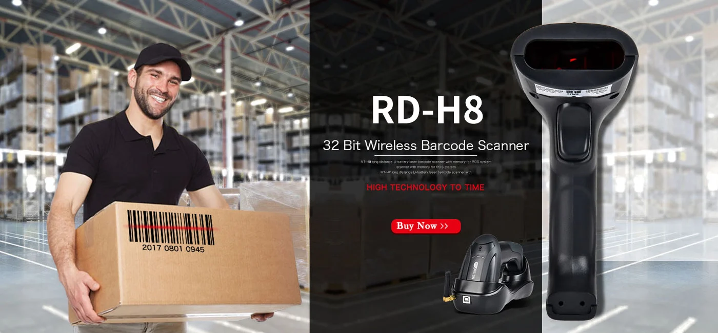 Беспроводной сканер штрих-кода PDF417, 2D1D изображение, QR-сканер штрих-кода, 32 бит, легкая зарядка, RD-H8 для POS инвентаризации, Мобильный экран