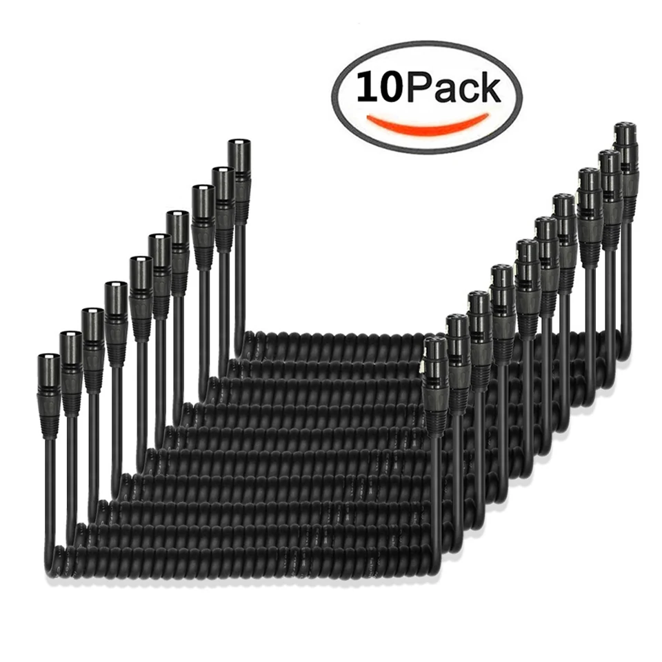 Bochara эластичный спиральный кабель XLR папа-мама 3Pin jack OFC медная фольга + Плетеный экранированный для микрофона миксер 10 шт