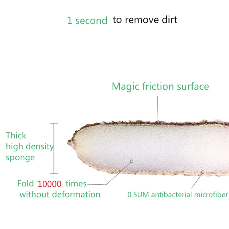 Наши чистящие губки отличаются от других: Утолщенные губки высокой плотности складываются 10000 раз без деформации. Особенно добавьте Антибактериальный Серебряный Ион Ag +, чтобы эффективно подавить бактерии. Двухсторонняя различная ткань, одна сторона сильного трения (не повреждает поверхность предмета), другая сторона 0,5мкм американская ткань из микрофибры, мягкая и сильная чистка. Попробуйте, вы полюбите нас!