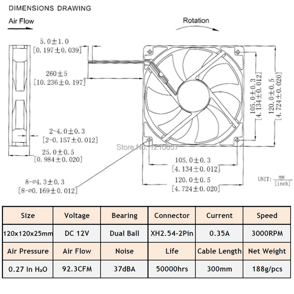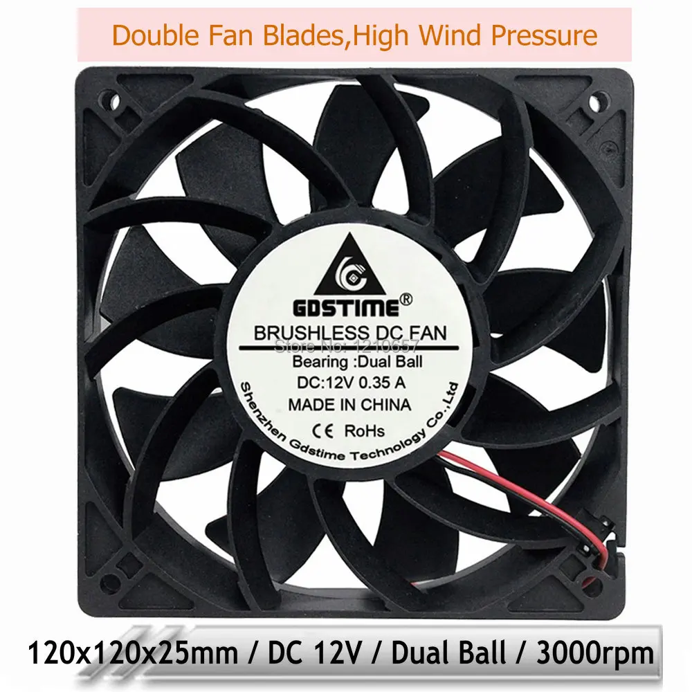 Gdstime DC 12 В двойной шар 12 см 120 мм x 120 мм x 25 мм компьютерный Бесщеточный Охлаждающий вентилятор 2Pin большой воздушный поток