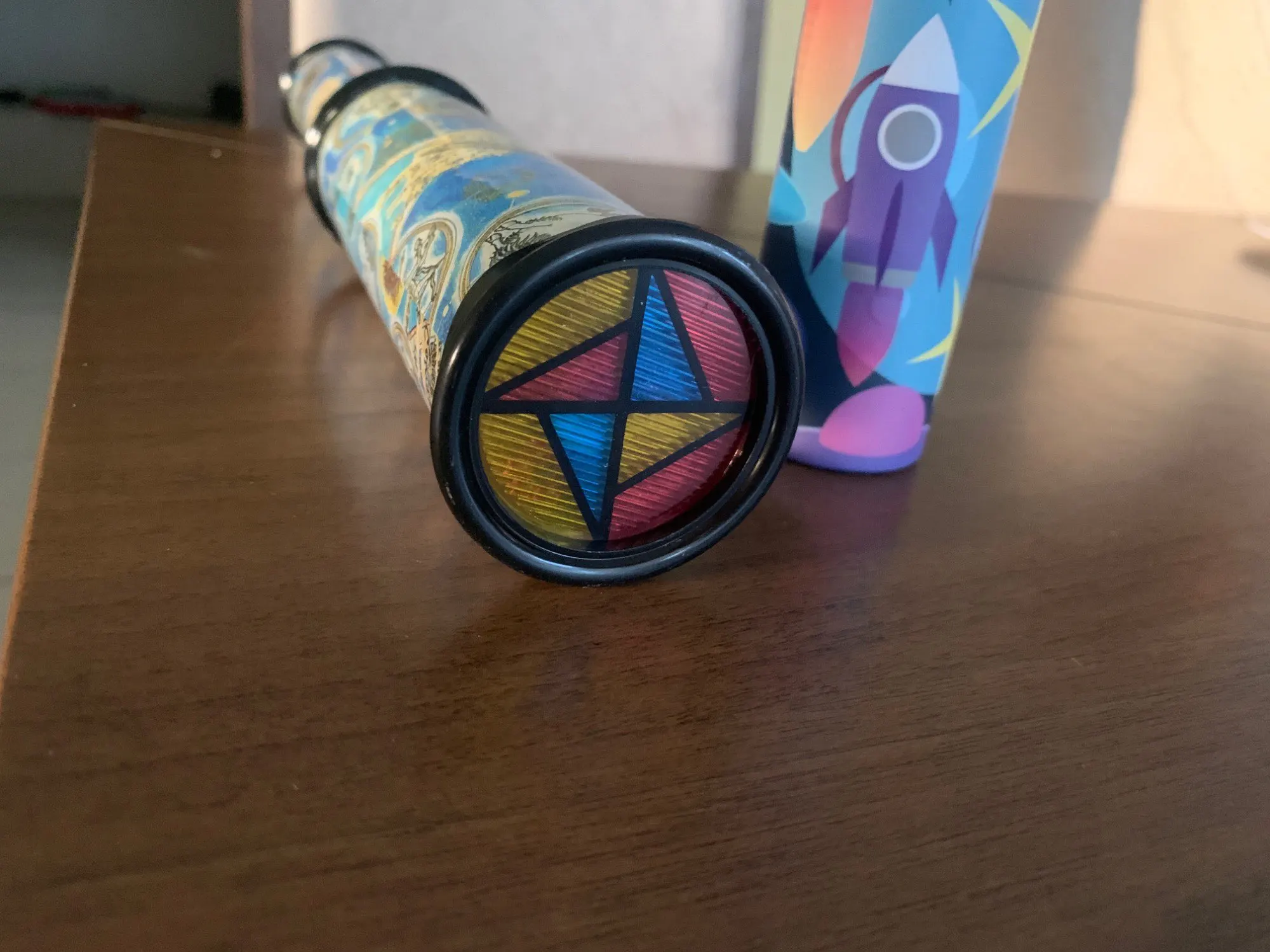 калейдоскоп красивый, но мои дети решили поиграть в пиратов в ванной. естественно бумага размокла, зеркала запотели и калейдоскоп уже не тот