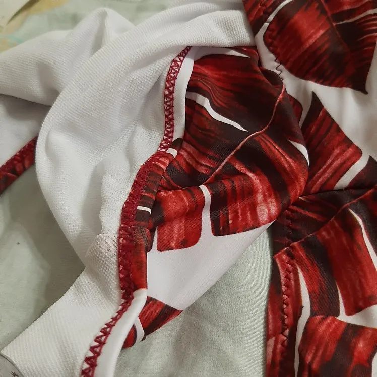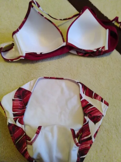 купальник реально классный, но увы в рекламном фото показана цветовая гамма белый фон с вкраплениями красных листочков, а мне прислали одну красноту.. не красиво мне не понравилось. Как говорится ожидание и реальность( смотрите фото)