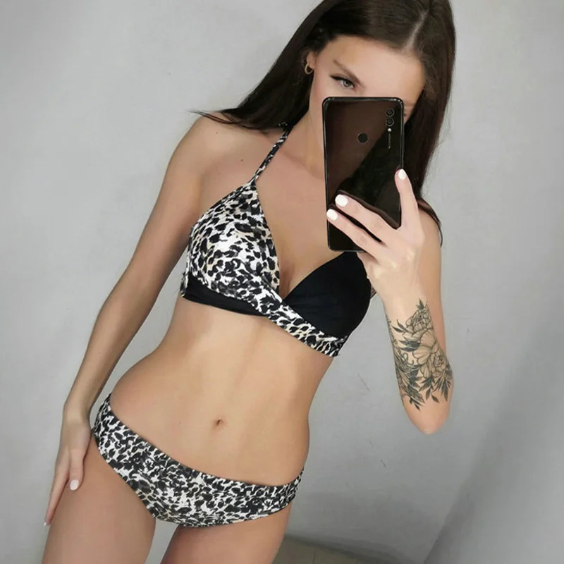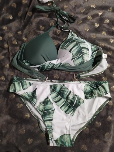 Riseado сексуальный пуш-ап бикини с принтом листьев, женские купальники, скрученный Купальник для женщин, 2022, купальник с лямкой на шее, комплект бикини на косточках