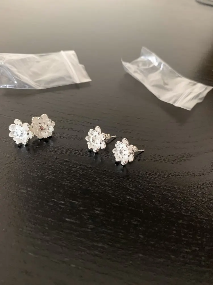 Женские серьги цветок лотоса серебристого цвета
