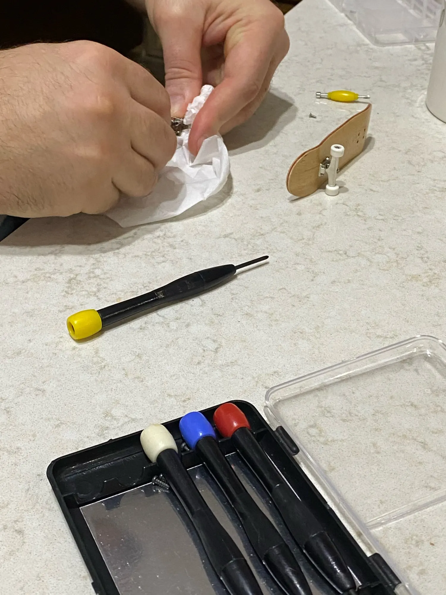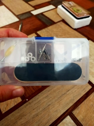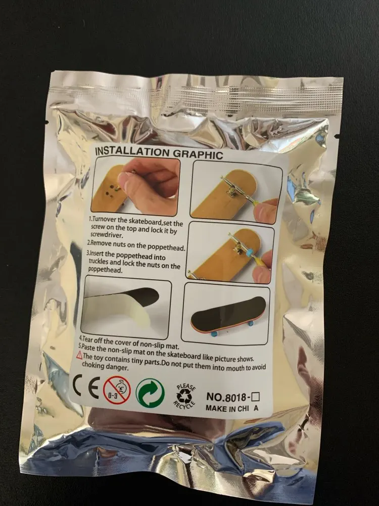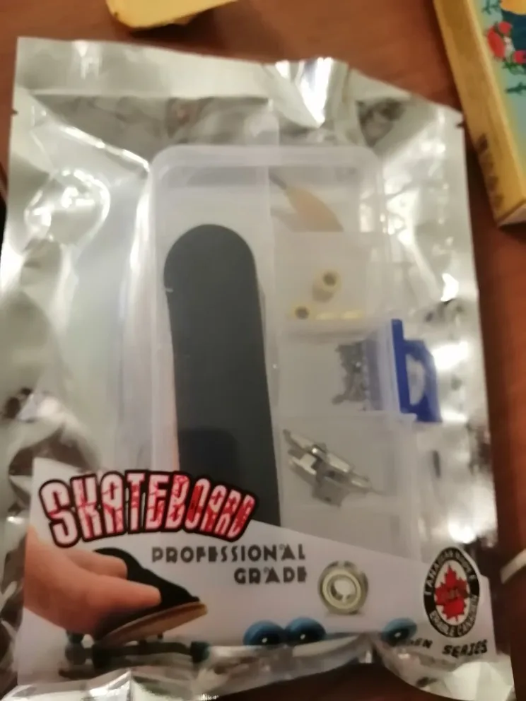 Фингерборд разобран по запчастям, упакован в пластиковой коробочке, каждый вид запчастей в отдельной ячейке. В комплекте малюсенькая отвёртка ) Выглядит прикольно. Пока не собирали. Подарим ребёнку на Новый год. Заказывал 11.11, доставка в Екатеринбург около 25 дней в объединённой посылке.