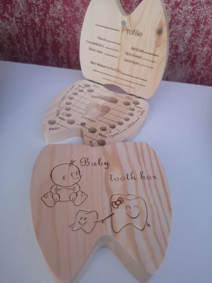 Деревянная коробка для детских зубов, для мальчиков и девочек, на английском, голландском, русском, французском, итальянском, органайзер для молочных зубов