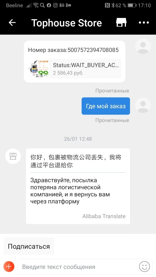 О повреждении доставки должно быть сообщено в течение 5 рабочих дней с момента доставки товара.
