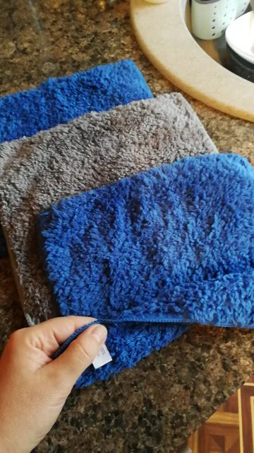 отличные тряпочки. плюшевые. очень хорошо впитывают воду. не оставляют разводов. собирают мусор, пыль. в комплекте было 2 синие и 3 серые тряпочки. размер 22.5х27 см. использую для уборки всего дома и с хлоркой и с другими средствами, все ок. тряпки просто находка!