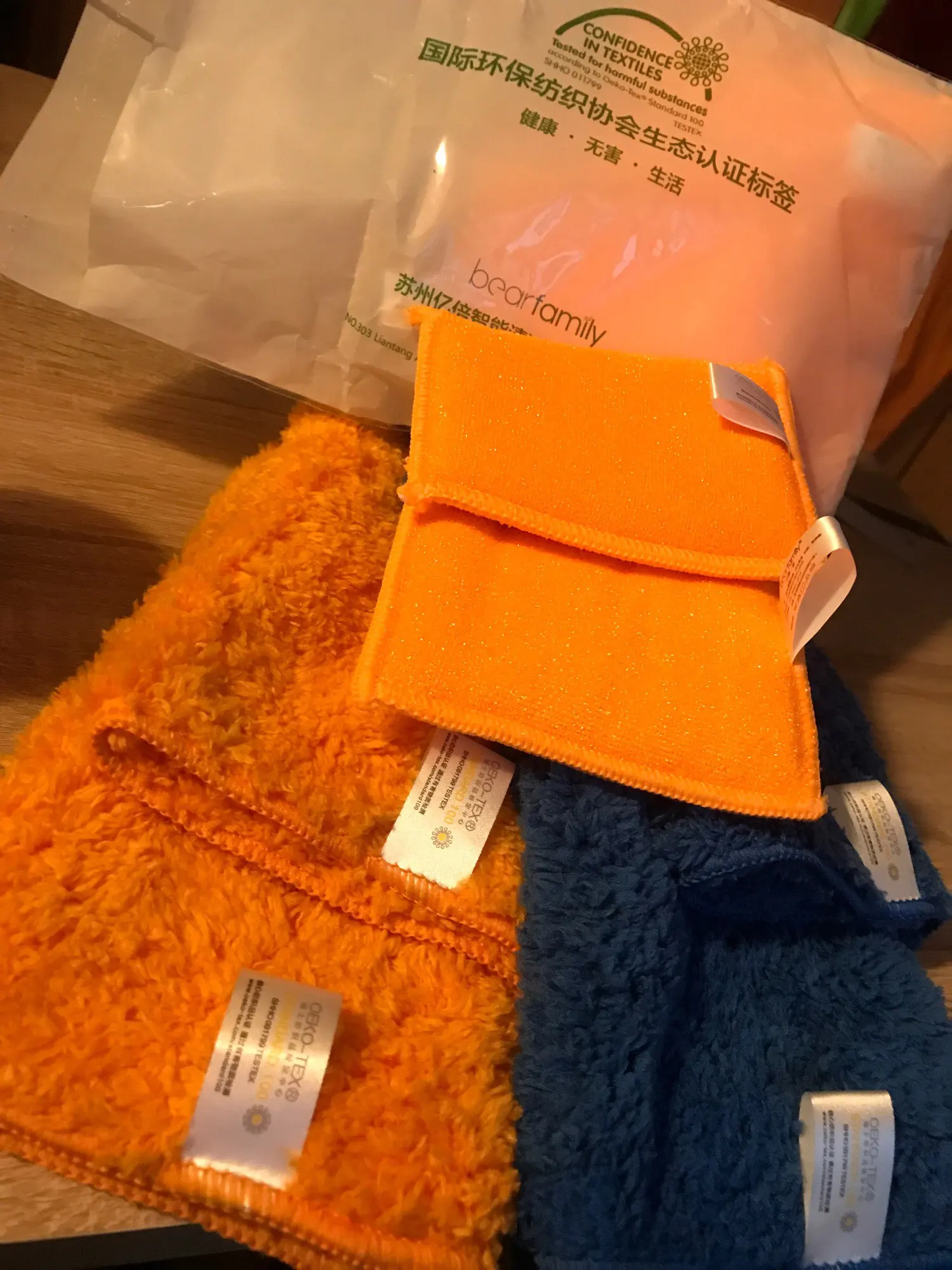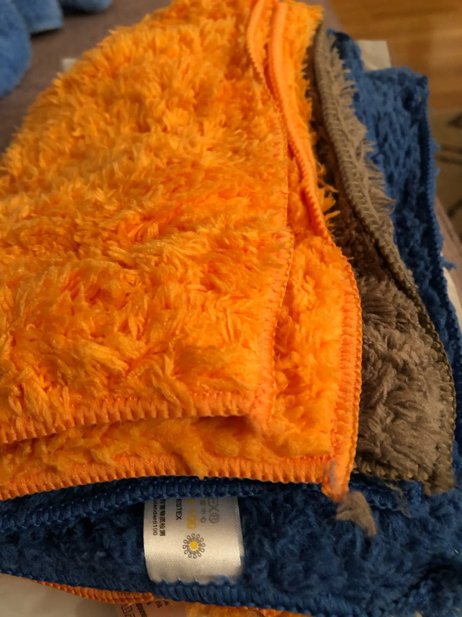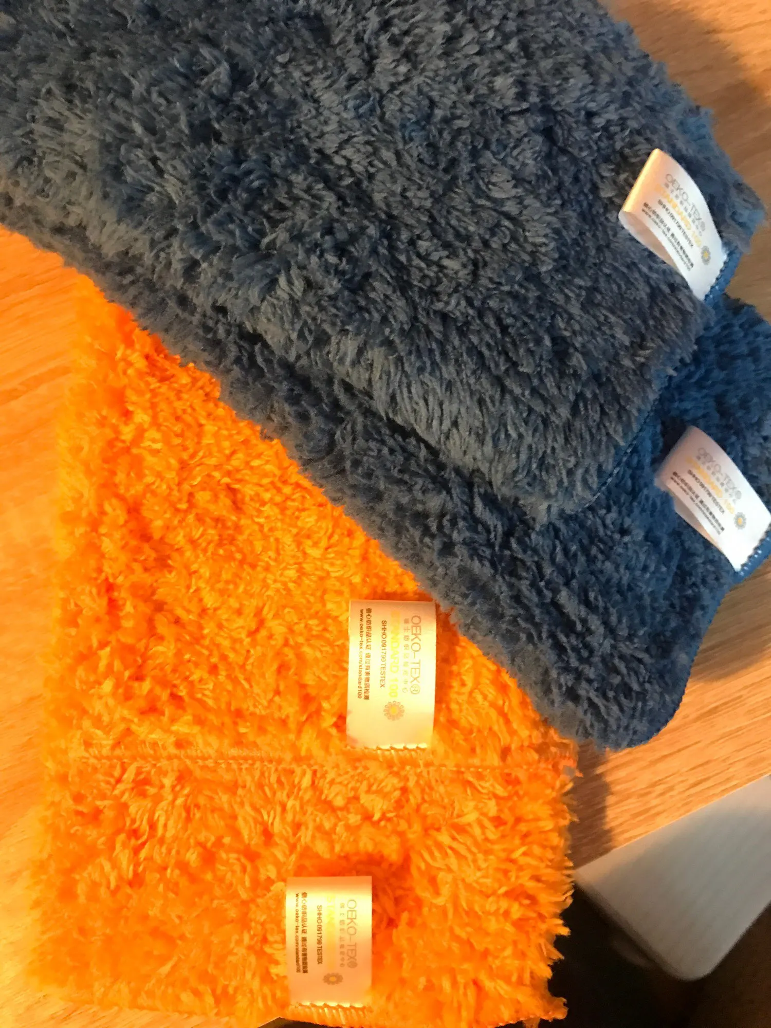Пришло в Москву за 2 недели. Цвета - две оранжевых, синяя и серая. По размеру немного не совпадают друг с другом. Качество вроде нормальное. Мягкие, ворс длинный. Брал в машину протирать дисплей и вытирать пыль с торпеды. С этой задачей справляются хорошо.