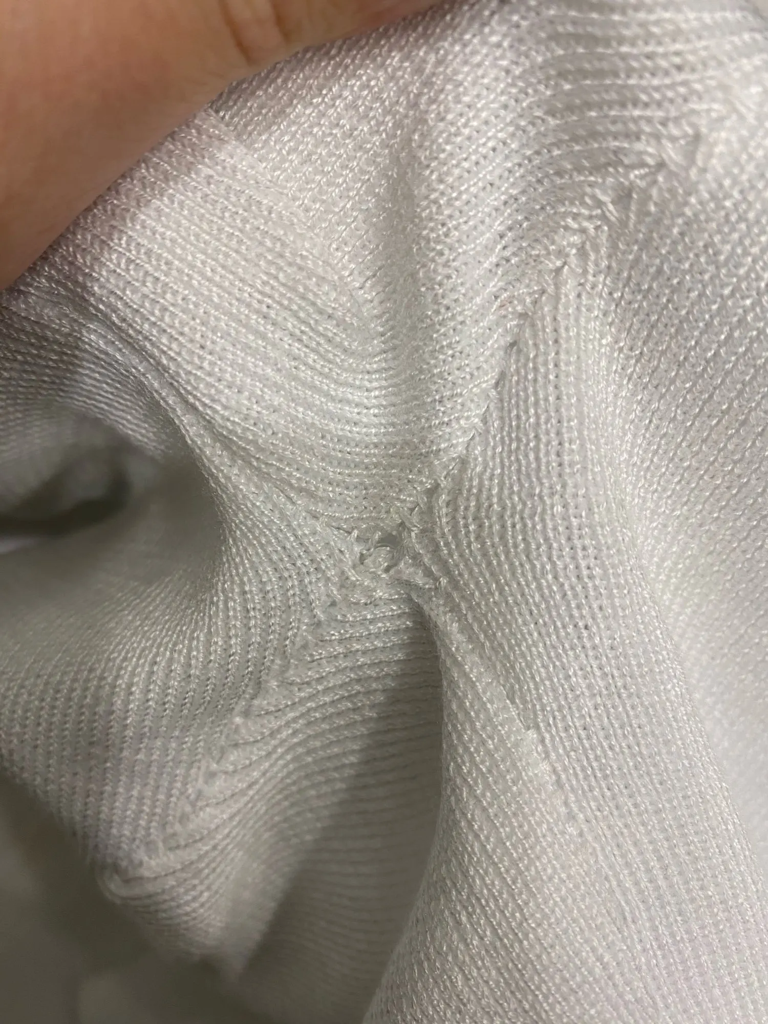 Он имеет ребристый материал стандартной толщины и необработанный вырез на концах. Очень тянущийся, и хорошее качество за эту цену, но люди сказали мне, что он подходит странным? Я думаю, что это не так, но это действительно зависит от того, какой размер вы