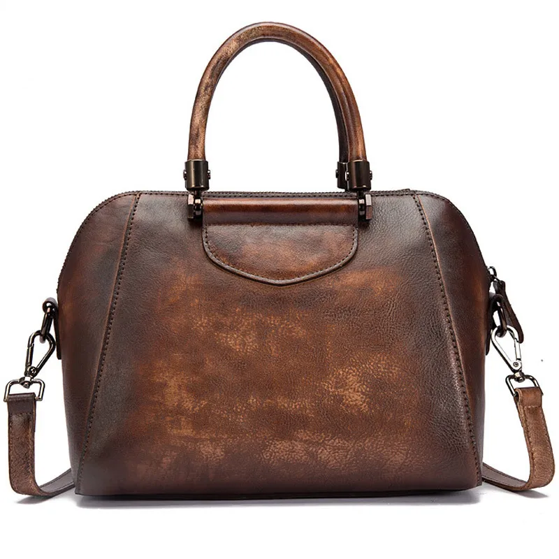 Сумка-тоут женская из натуральной воловьей кожи, с ручкой сверху, п...