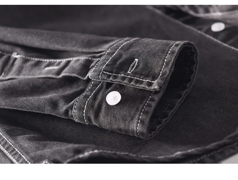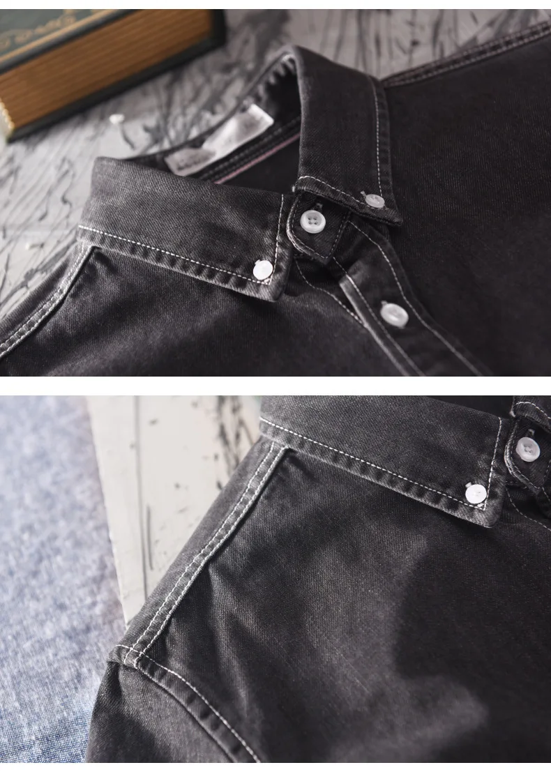 #4716 натуральный хлопок джинсовая рубашка для мужчин с длинным рукавом вымытые винтажные мужские рубашки Весна 2019 повседневная обувь черного и голубого цвета в стиле ретро размера плюс 3XL 4XL