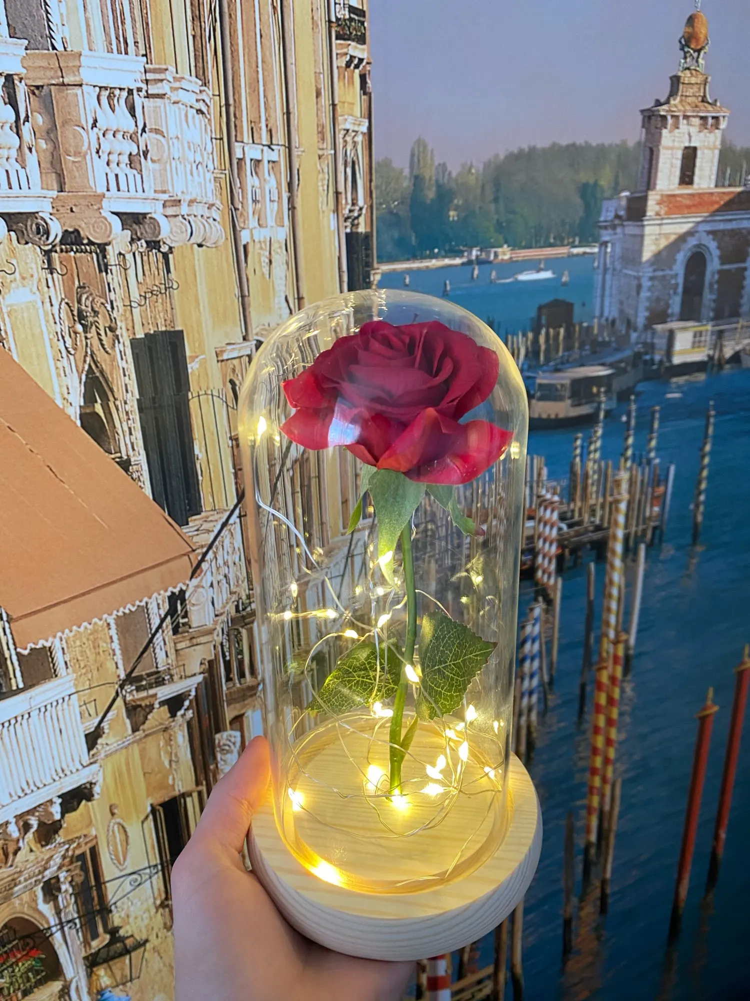Цветок Красавица и чудовище, светодиодная вечная роза в стекле, День Святого Валентина, искусственные цветы для свадьбы, подарок для матери, для декора розы