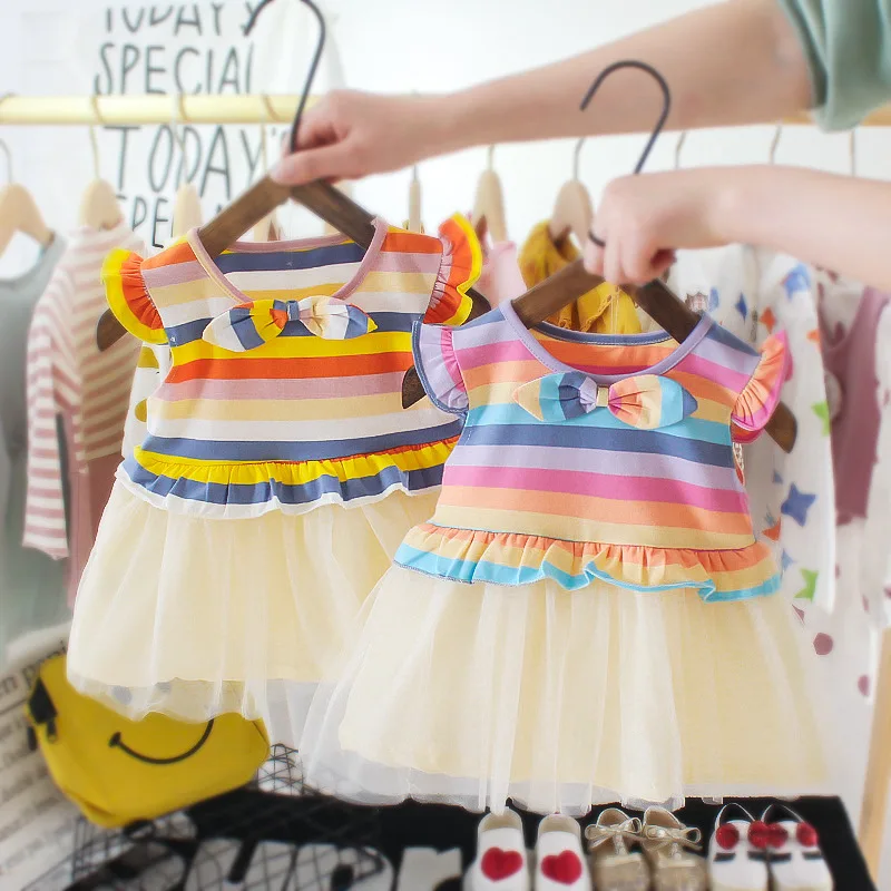 Новое платье для маленьких девочек, летняя одежда для новорожденных, лоскутное Сетчатое платье принцессы для девочек на 1 год, день рождения, Одежда для младенцев для крещения