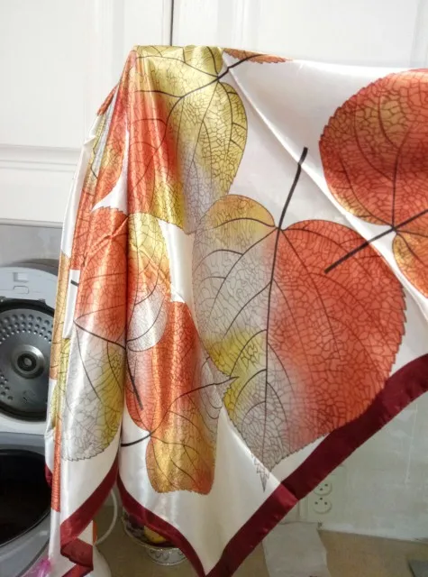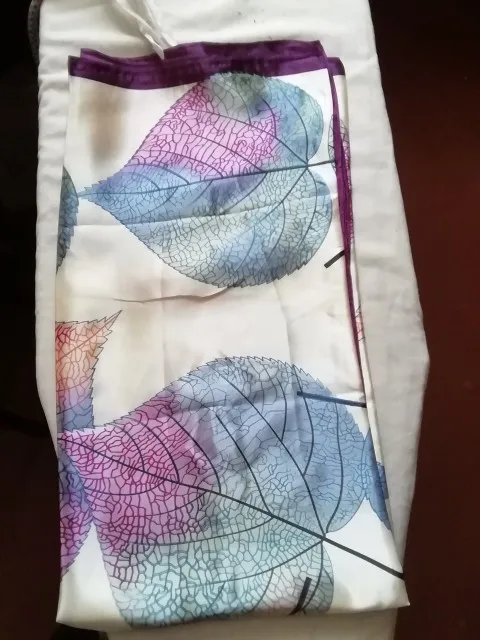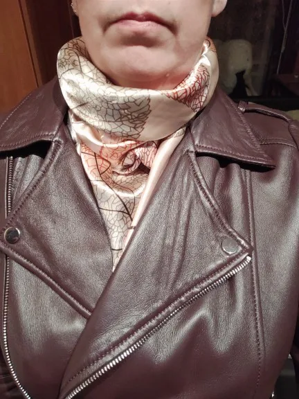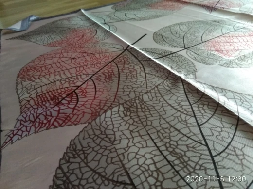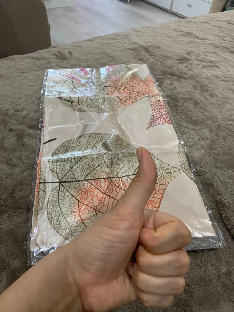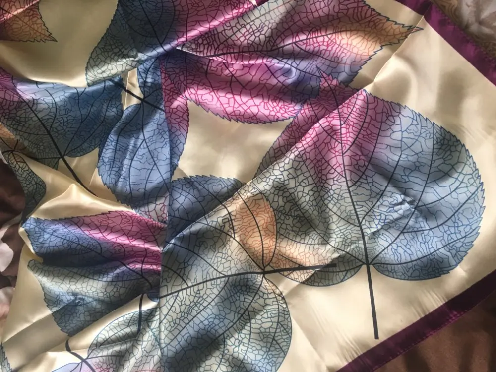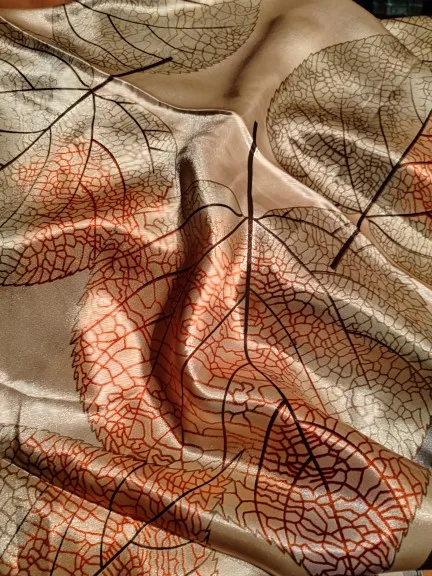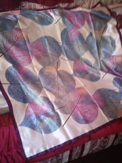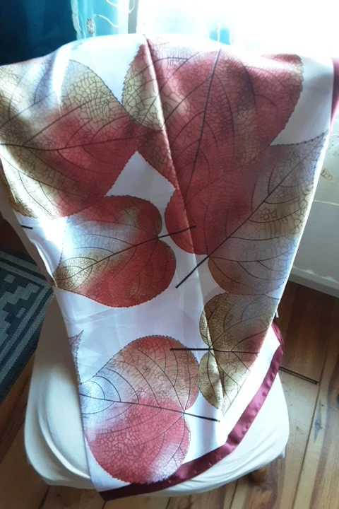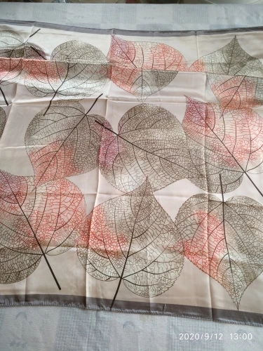 Платок восхитительный, такие красивые листья на нём, четкие, яркие, нежные. Прекрасный платок для осени. Продавец положил 2 платка, огромное спасибо я второй подарю маме. Платки все двусторонние, так что смотрится очень красиво. Доставка очень быстрая. Рекомендую однозначно!