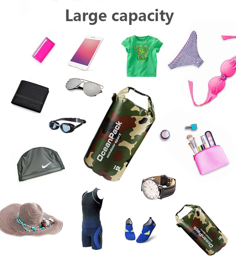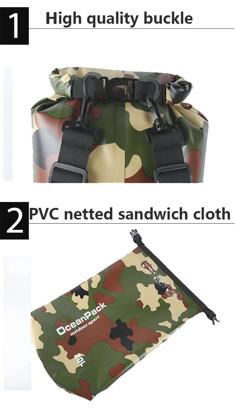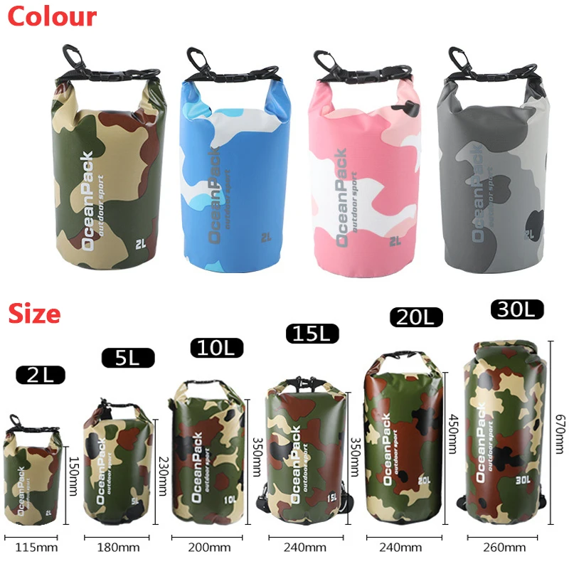 2101520 л камуфляжная водонепроницаемая сумка, сухая сумка, уличная сумка для хранения для плавания, мужская сумка для рафтинга, каякинга, дрифтинга, реки, треккинга