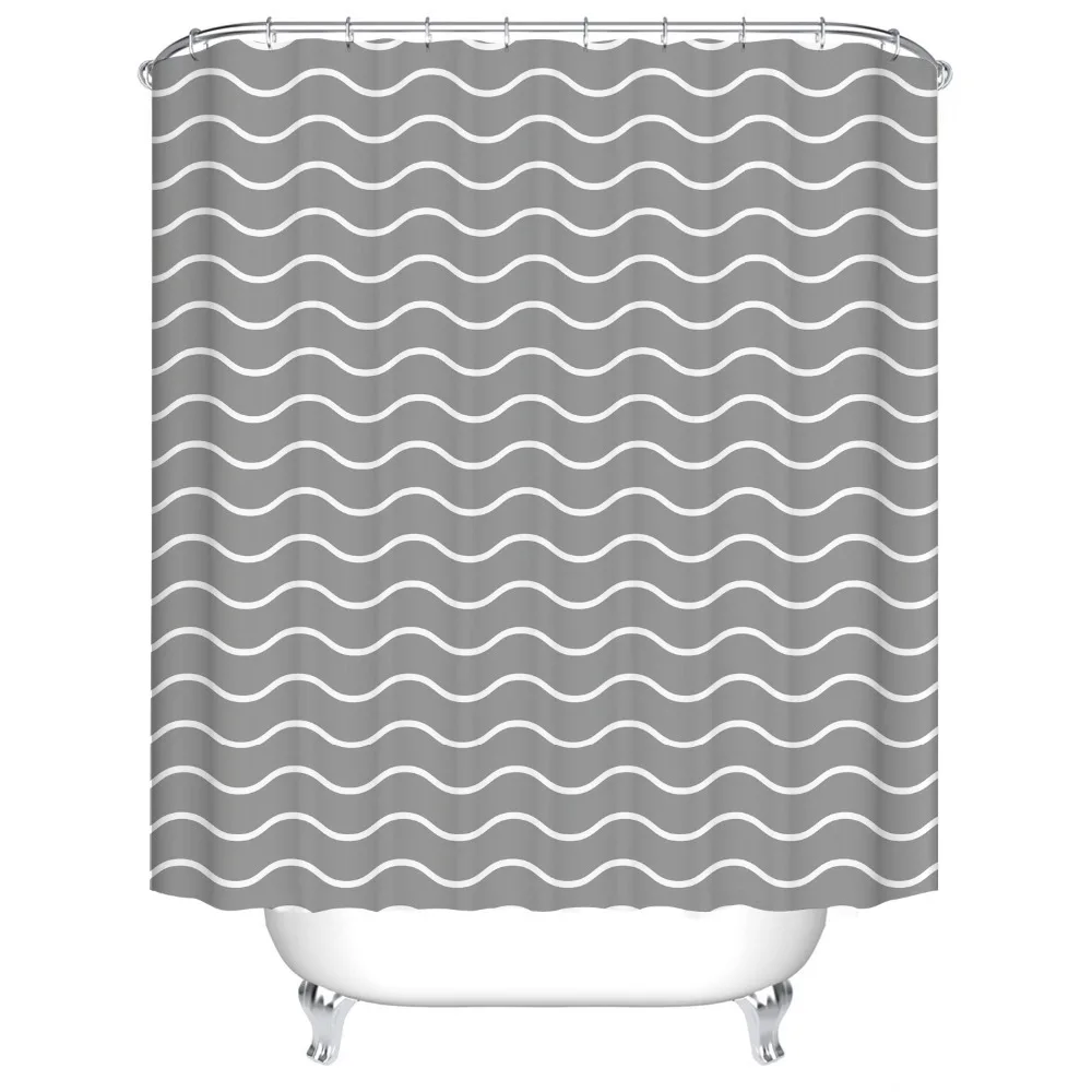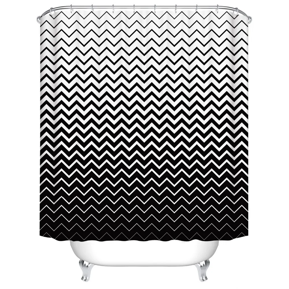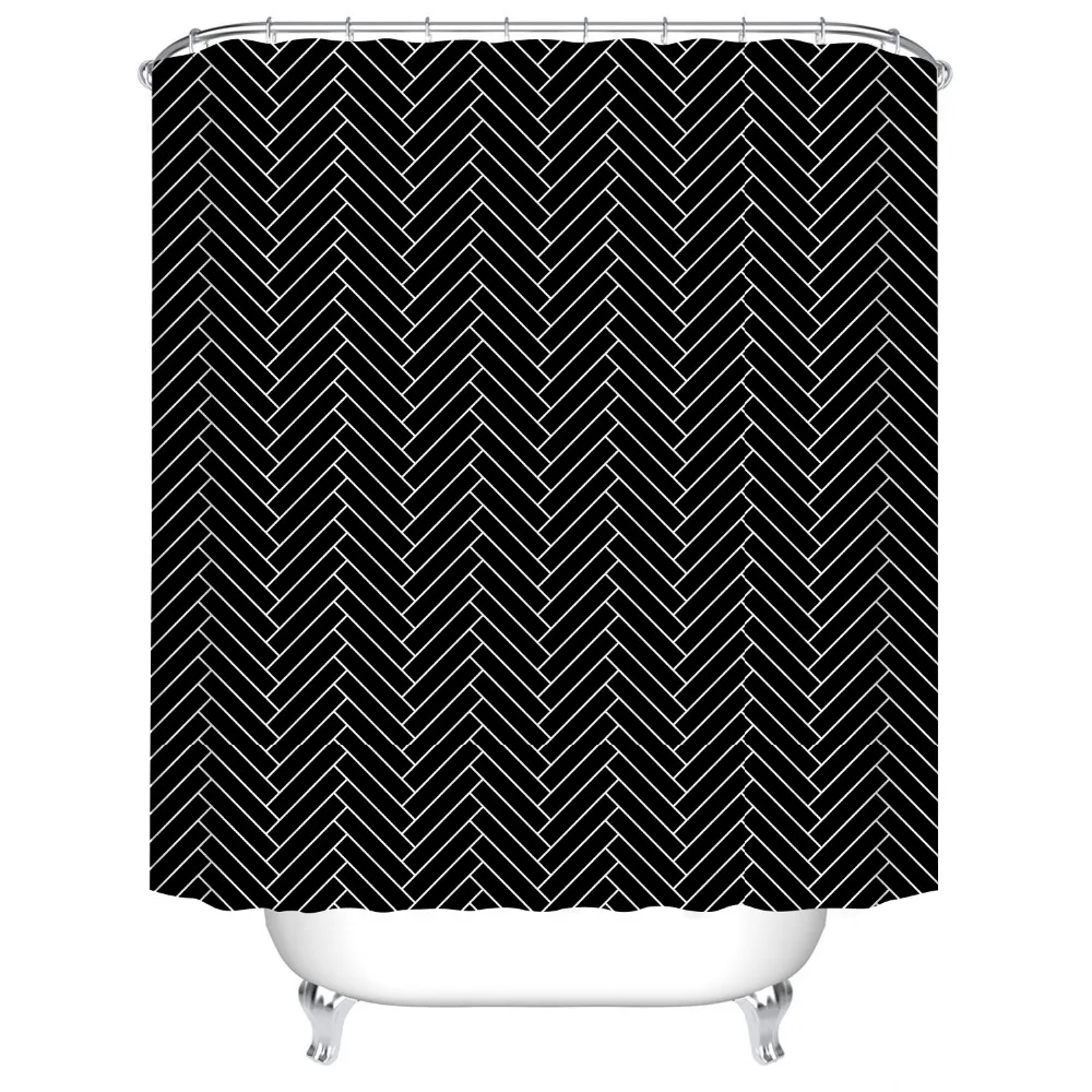 Занавеска для душа из ткани, с геометрическим рисунком слона, черная, белая, с крючками, Frabic, s