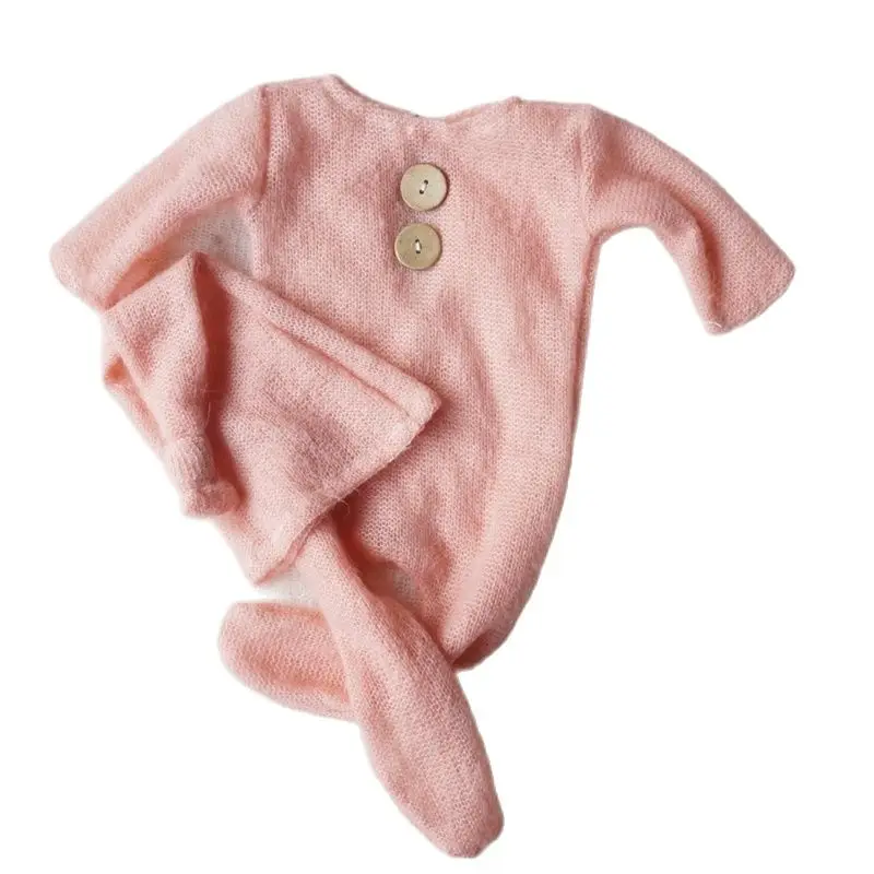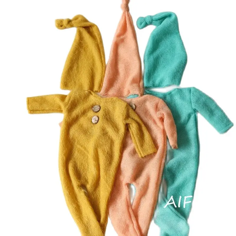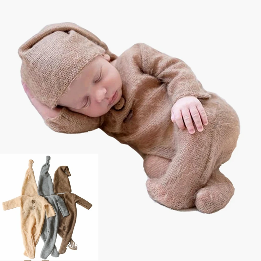 Реквизит для фотосъемки новорожденных аксессуары наряд для новорожденных мальчиков и девочек трикотажный мохеровая Шапочка + Комплект комбинезонов детская фотоодежда для студийной фотосъемки