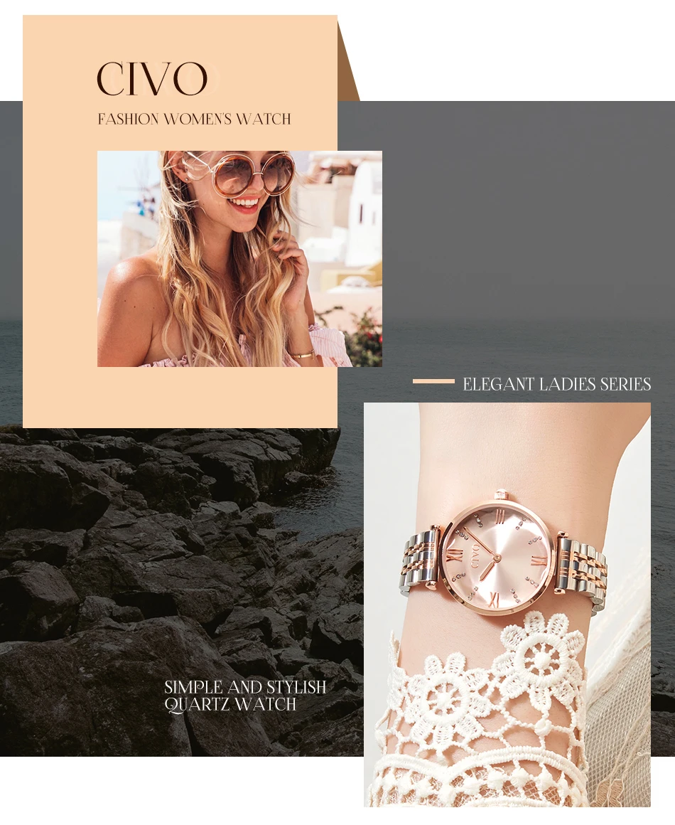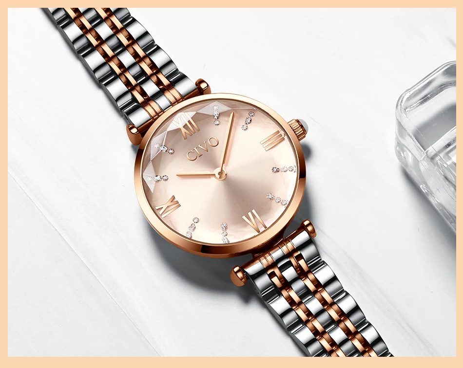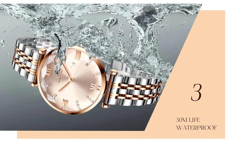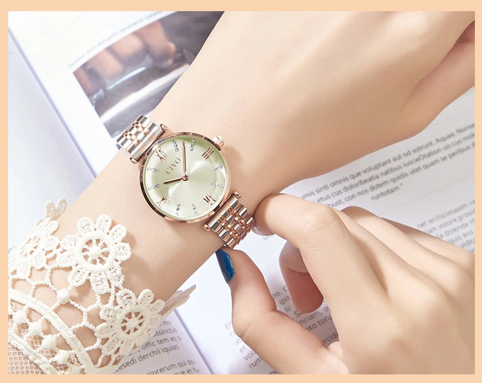 Женские Водонепроницаемые часы с браслетом, цвета розового золота, со стальным ремешком