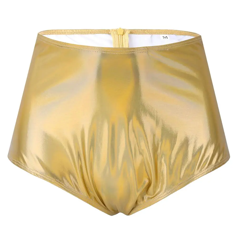 Женские шорты для танцев на шесте; Одежда для фестиваля; Блестящие вечерние шорты из искусственной кожи на молнии с высокой талией и высокой посадкой