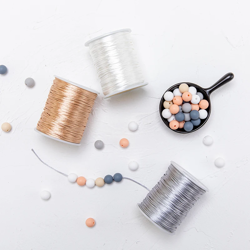 1 шт. 1 мм 80 м атласный шелковый шнур, нейлоновый шнур, красочный детский прорезыватель, аксессуары, ожерелье для прорезывания зубов, погремушка, шнур, инструмент сделай сам, игрушки для детей